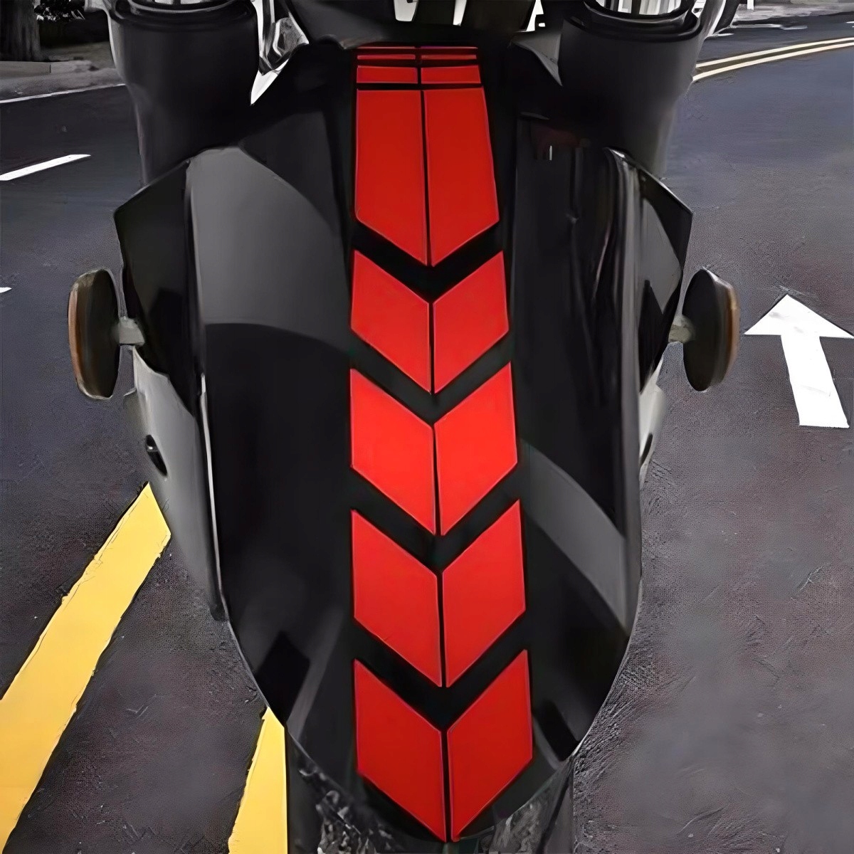 Ви хочете виділити свій мотоцикл? Наша помаранчева наклейка у формі стрілки - ідеальне рішення!