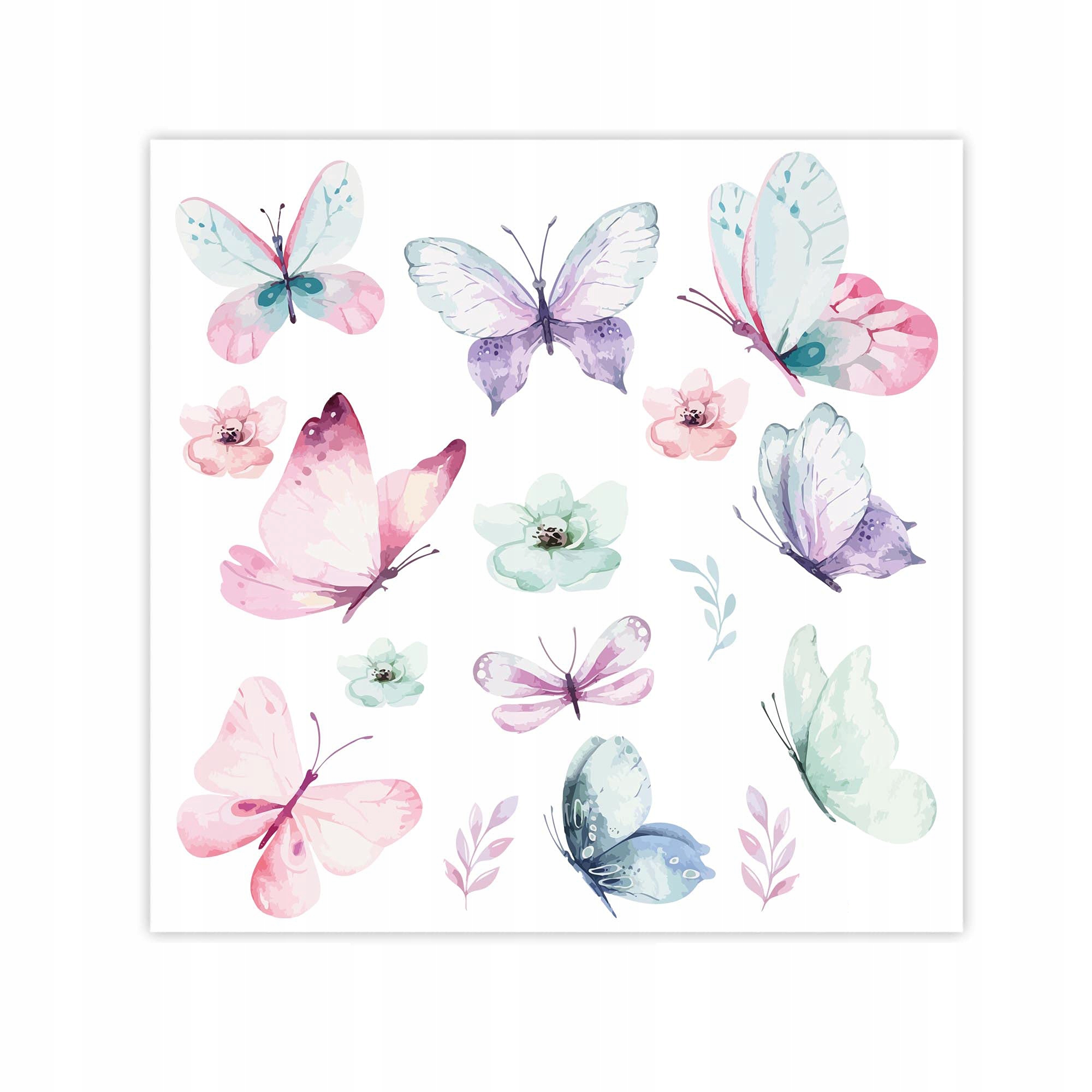 Атмосфера: у мрійливому настінному татуюванні ніжні метелики пурхають у прекрасних відтінках рожевого, фіолетового та бірюзового в оточенні ніжних квітів.