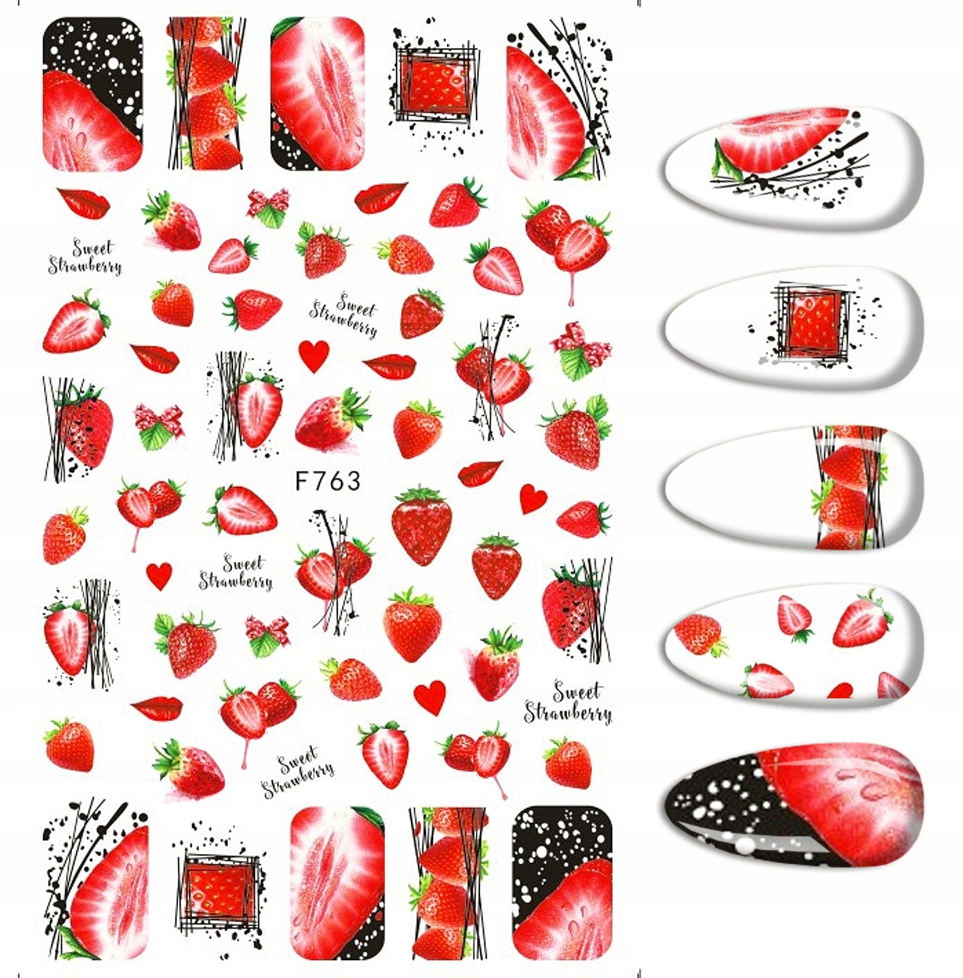 Наклейки на прикраси нігтів. Полуничні візерунки