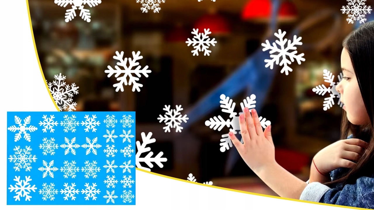 NAKLEJKI ŚWIĄTECZNE OZDOBY NA OKNO SZYBĘ ŚNIEŻYNKI PŁATKI ŚNIEGU ADHEZYJNE