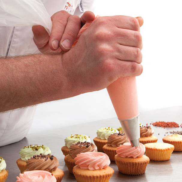 Декоративний пакет виготовлений із міцної прозорої фольги, яка придатна для контакту з харчовими продуктами відповідно до стандарту HACCP. Має спеціальне покриття, яке запобігає вислизанню з рук під час роботи та під високим тиском. Рукав підходить для всіх декоративних підкладок, просто відріжте його до потрібної довжини.
