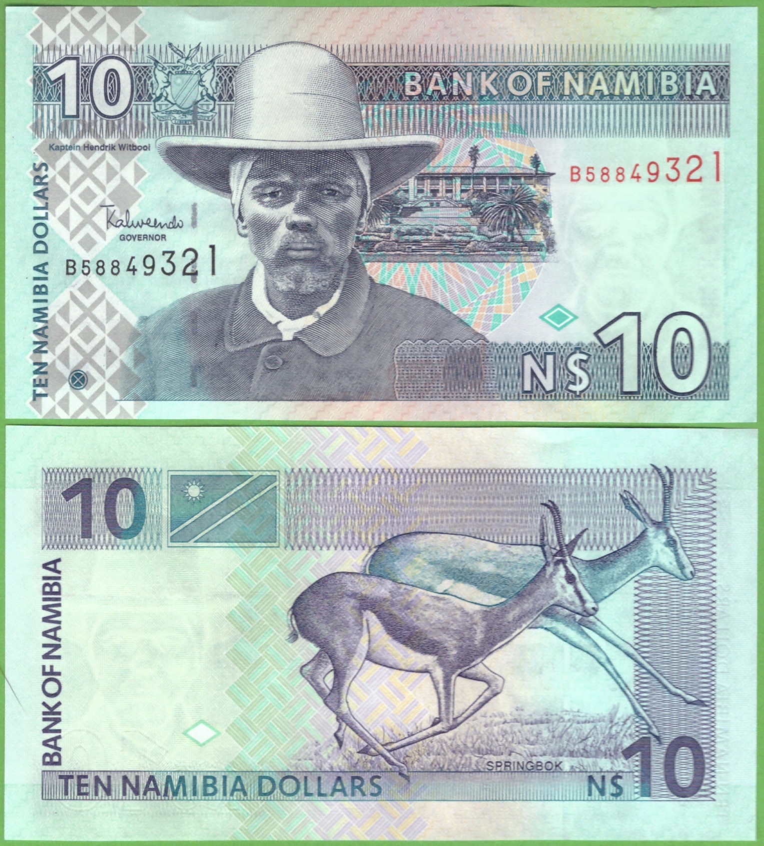 НАМІБІЯ 10 ДОЛАРІВ ND 2001 P-4c UNC PREFIX B