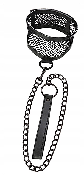 Чуттєвий комплект, який поєднує нижню білизну та еротичні аксесуари. Чому білизна? Комір оброблений сіткою з великими отворами. Подібно до того, що жінки часто носять поверх ажурних панчох, рукавичок, боді. Це робить його одночасно чуттєвим і збуджуючим, але також служить меті - тобто. працює як нашийник. Повідець, прикріплений до нього, дозволяє вам керувати, контролювати рухи та виконувати всі дії, які ви можете робити з вашою підводною лодкою.