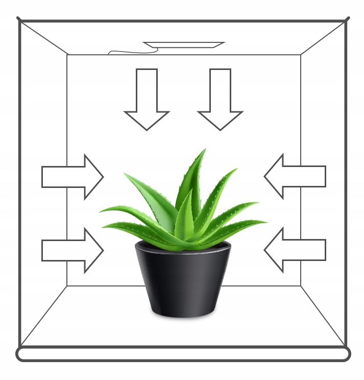 Намет оснащений двома світлодіодними панелями, положення яких можна довільно регулювати для досягнення різних освітлювальних налаштувань. Його внутрішня частина покрита спеціальним матеріалом, який рівномірно розподіляє світло, що створюється лампами. Додатковий розсіювач дозволяє досягти ефекту розсіяного, м'якого освітлення, одночасно зменшуючи відблиски, відблиски та тіні на фотографованому виробі.