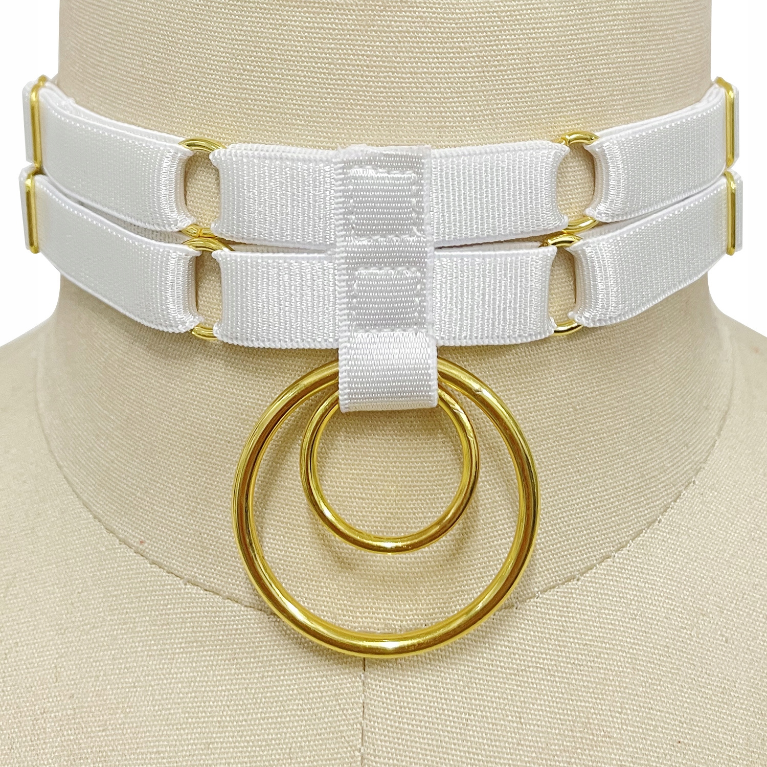 НАМИСТО СО СТРІЧКОЮ ЧОКЕР З ГУМОВИМИ ЗОЛОТИМИ РЕГУЛЮВАННЯМИ БІЛЕ