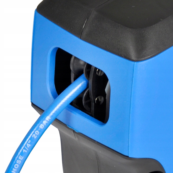 Котушка є оснащений замком для запобігання мимовільному згортанню шланга та вішалкою, яка дозволяє повісити шланг на стіну.