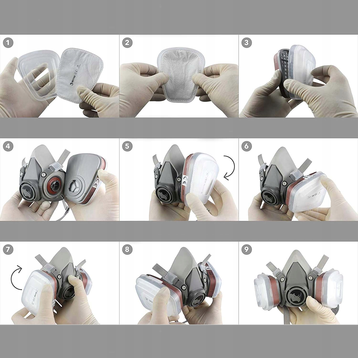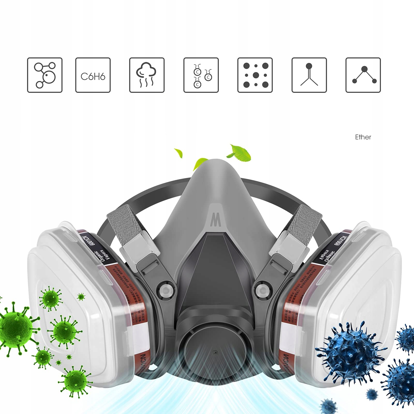 ✔️✔️ 【Сфера застосування】 робочі зони з хімікатами, металами, фарбами, сільськогосподарськими речовинами, метанолом та іншими подразливими речовинами парів і газів. Під час механічних робіт, таких як зварювання, різання пилкою, шліфування, графіті, фарбування тощо, він може запобігти потраплянню частинок пилу в дихальні шляхи.