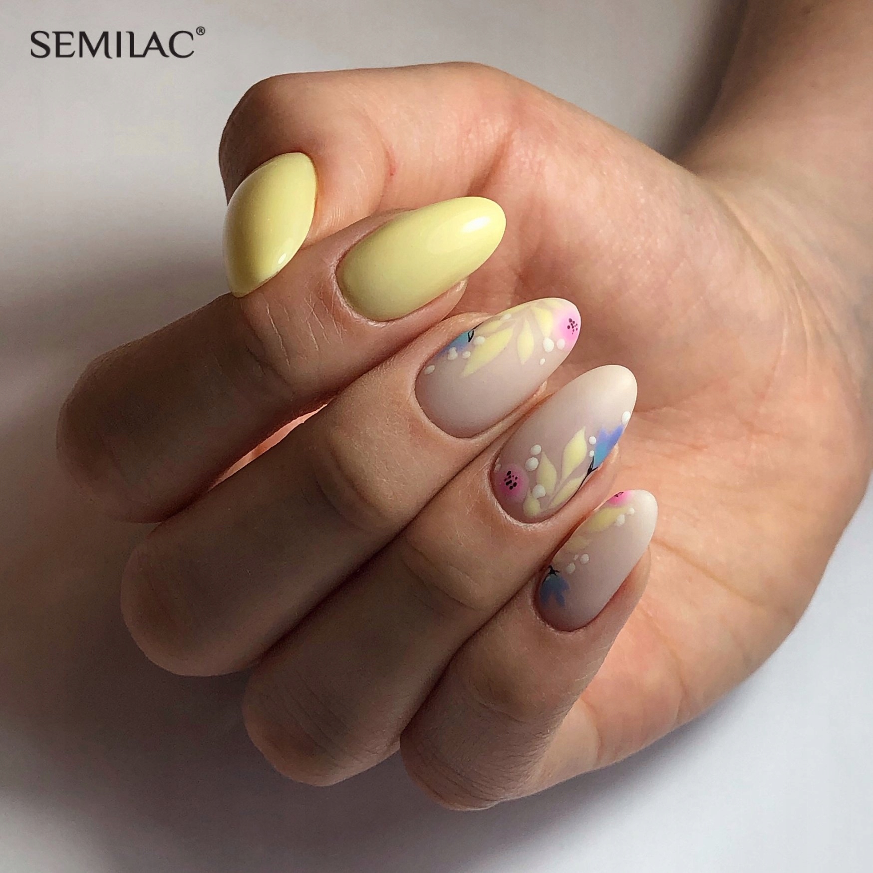 - LED LAMP 24/48 Вт - 30 секунд сек. 4 Не застосовуйте безпосередньо до нігтьової пластини. Ви можете повторити додаток Semilac® Color для досягнення задовільного ефекту. Закінчіть стиль, застосовуючи та затверджуючи вершину Semilac®.