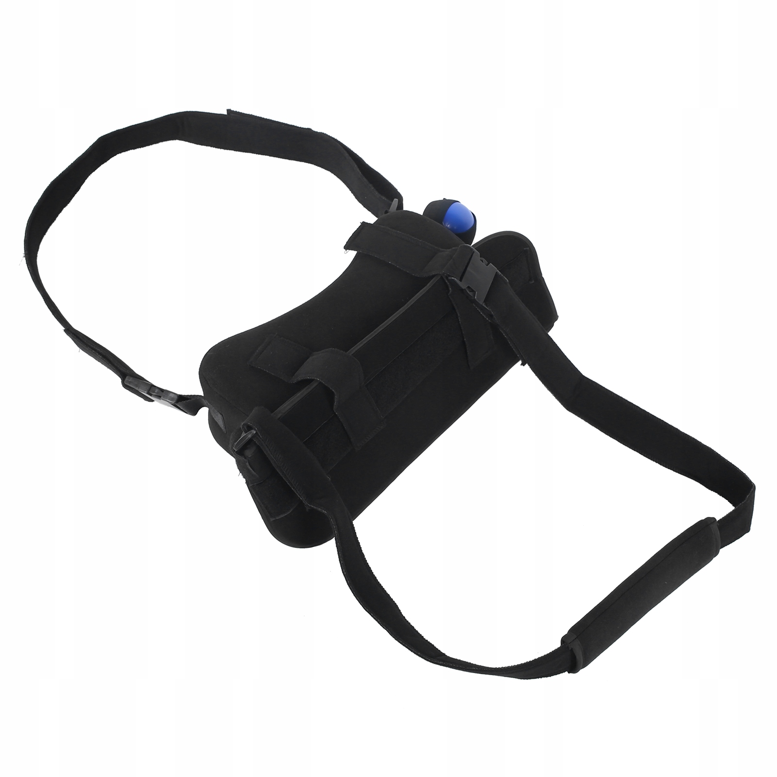 - Вигнута подушка щільно прилягає до талії, а пояс фіксується; приклеюється до поверхні застібок Velcro ремінця для підтримки руки, ремінь для руки вішається на шию, а рука кладеться на підлокітник.