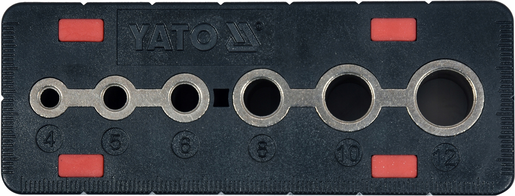 - 5 отворів, оснащених напрямними з вуглецевої сталі для свердел діаметром 4, 5, 6, 8, 10 і 12 мм