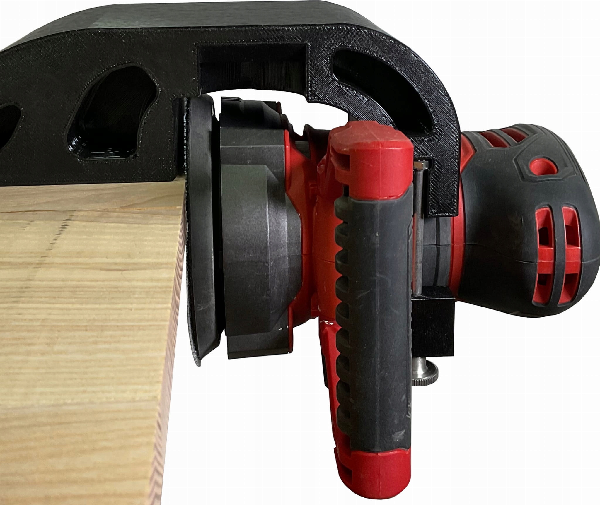 - Використовуючи рубанок як опору, безпечно шліфуйте дрібні елементи, як на стаціонарній болгарці, без ризику вирвати елемент з руки. Це рішення забезпечує не тільки більшу безпеку роботи, але й набагато більшу точність.