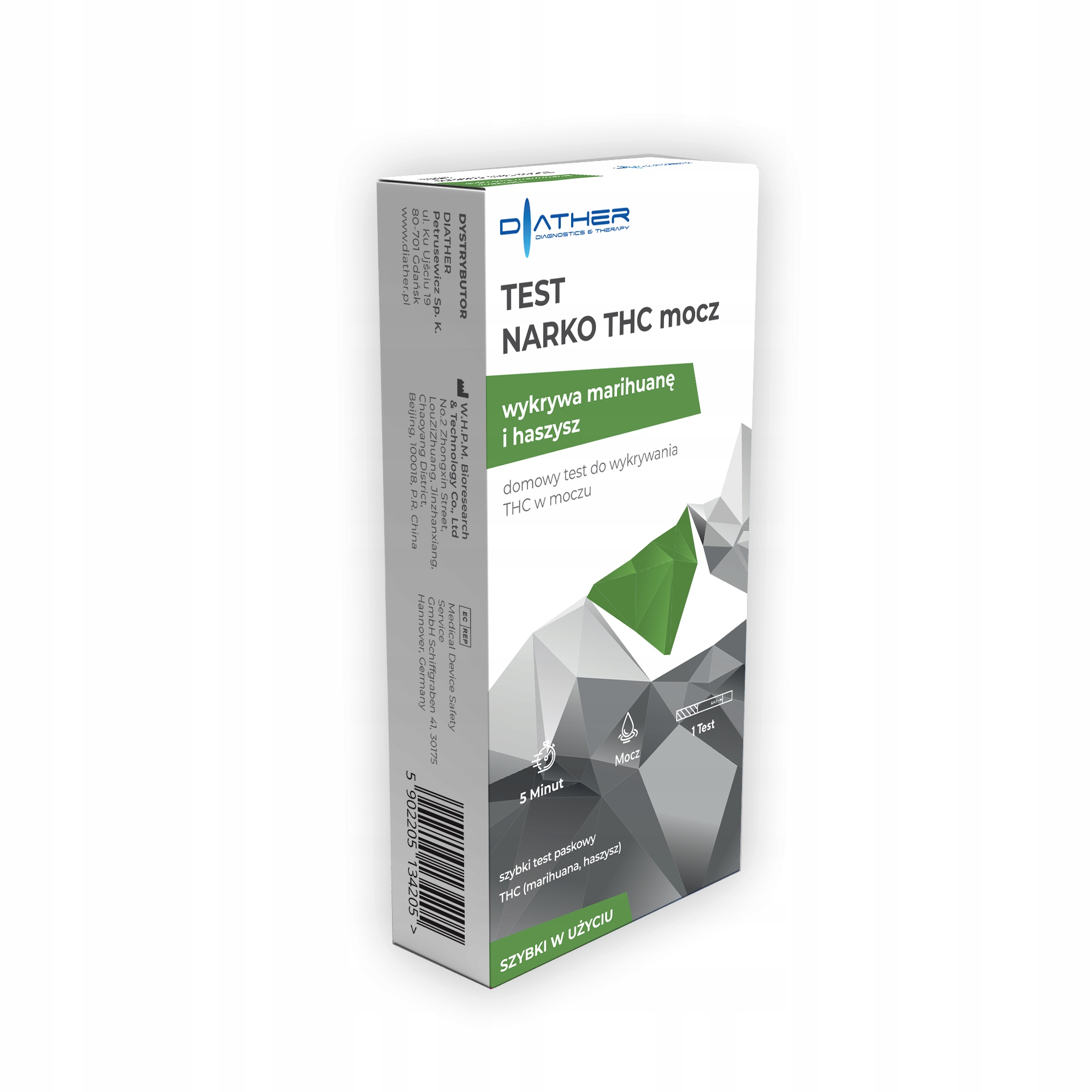 Тест сечі Diather NARKO THC визначає марихуану та гашиш 1 упаковка.