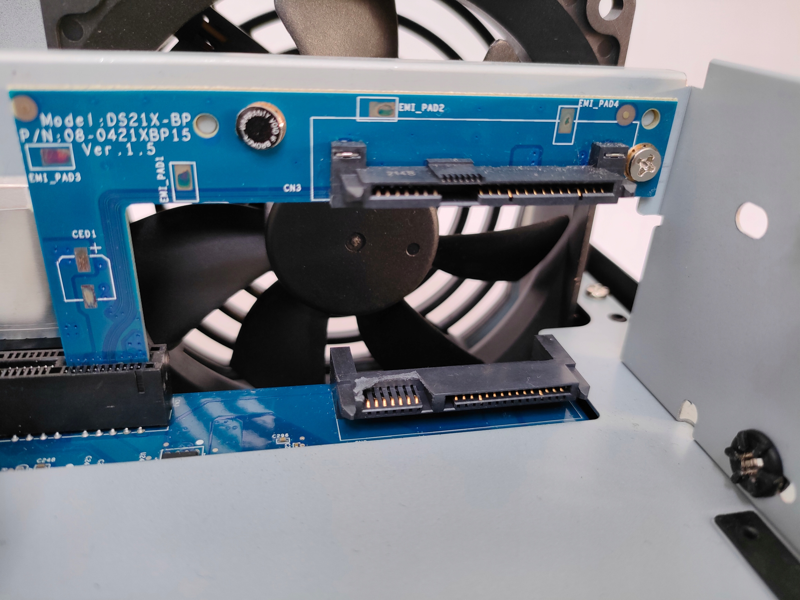 Додаткова інформація : Зламаний пластик на одному вході SATA (диск визначається правильно, не впливає на роботу NASA) - видно на фото нижче.