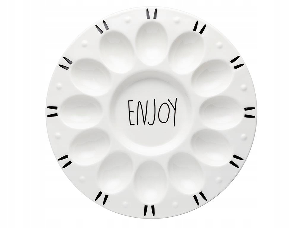 Тарілка для яєць Enjoy від Florina виготовлена з порцеляни. Має 12 отворів для яєць. Його можна мити в посудомийній машині. Дозволяє виставляти круті або м’які яйця. Ідеально підходить для будь-якого столу.