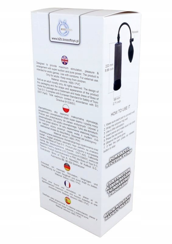 Повітря відкачується з балона за допомогою зручного механізму. Смужка розміру на поверхні дозволяє помітити різницю до і після масажу. Дуже зручний у використанні насос для збільшення, завдяки якому ваш пеніс може збільшитися як в довжину, так і в діаметрі всього за кілька тижнів. Його робота проста і є результатом законів фізики - після вставлення члена всередину накачування створює негативний тиск. Це, у свою чергу, дозволяє кровоносним судинам наповнюватися кров’ю швидше та сильніше.