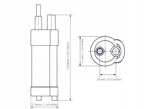- довжина кабелю 1 метр; синій (-), коричневий (+),