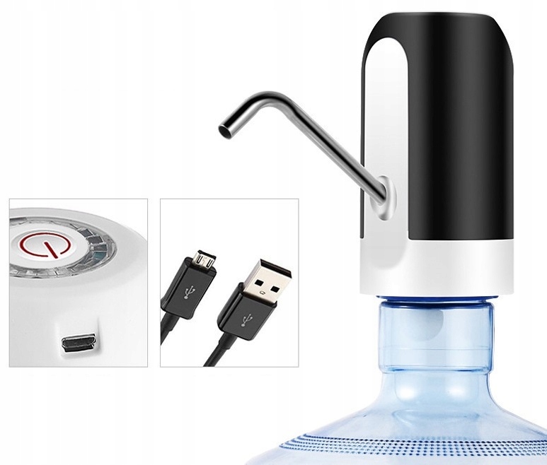 Водяний насос, бездротовий розподільник, живлення від вбудованого акумулятора. Ви можете використовувати його в кемпінгах, в наметі або вдома без підключення до джерела живлення. У разі розрядки просто підключіть зарядний пристрій або powerbank через порт Micro USB. Підходить для пляшок з водою від 5 до 20 л.