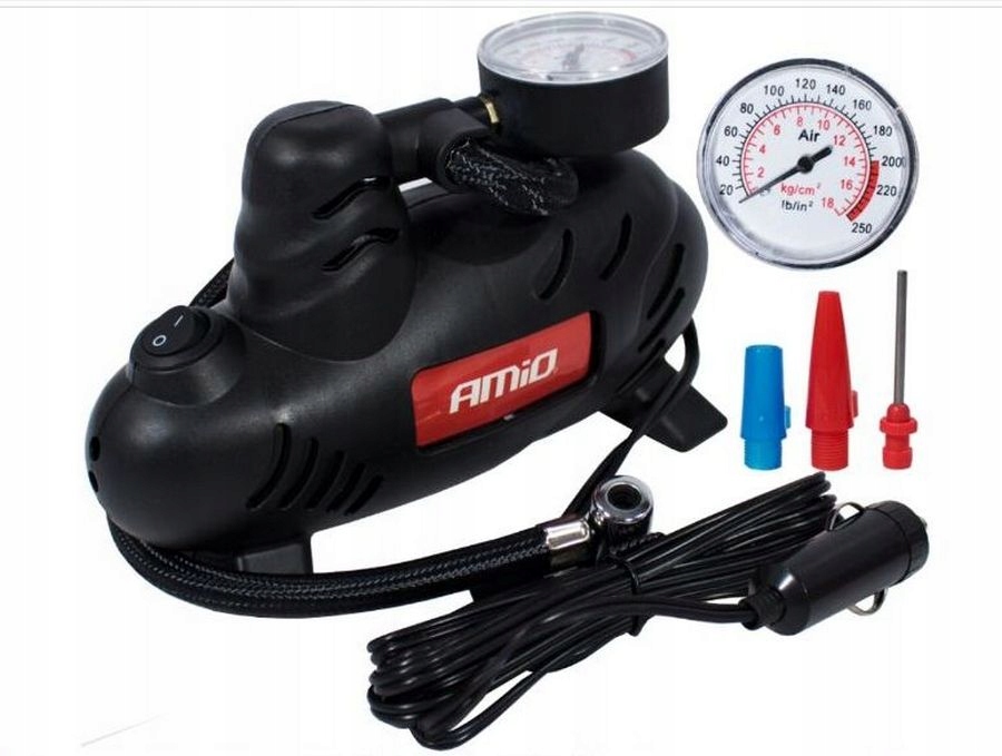 Практичний автомобільний компресор з 3 виводами від польської компанії Amio. Призначений для накачування автомобільних і велосипедних коліс, м'ячів і матраців. Живиться від 12V - автомобільного прикурювача. Характеризується високою потужністю і тиском. Завдяки компактним розмірам він легко поміститься в будь-який багажник.