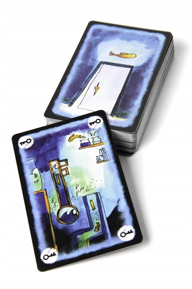 - "Перехрестя та мертві кінці" Вступні картки з заданим символом (3 сонце, 2 місяць, 1 ключ), але служать будь -яким кольором "Joker". Він також містить 10 карт "тупиків", які залишаються в руках гравців (на ньому не можна) і заблокувати її 5 карт руки ... до тих пір, поки гравець не відкине всю руку (= єдиний спосіб відкинути тупик).