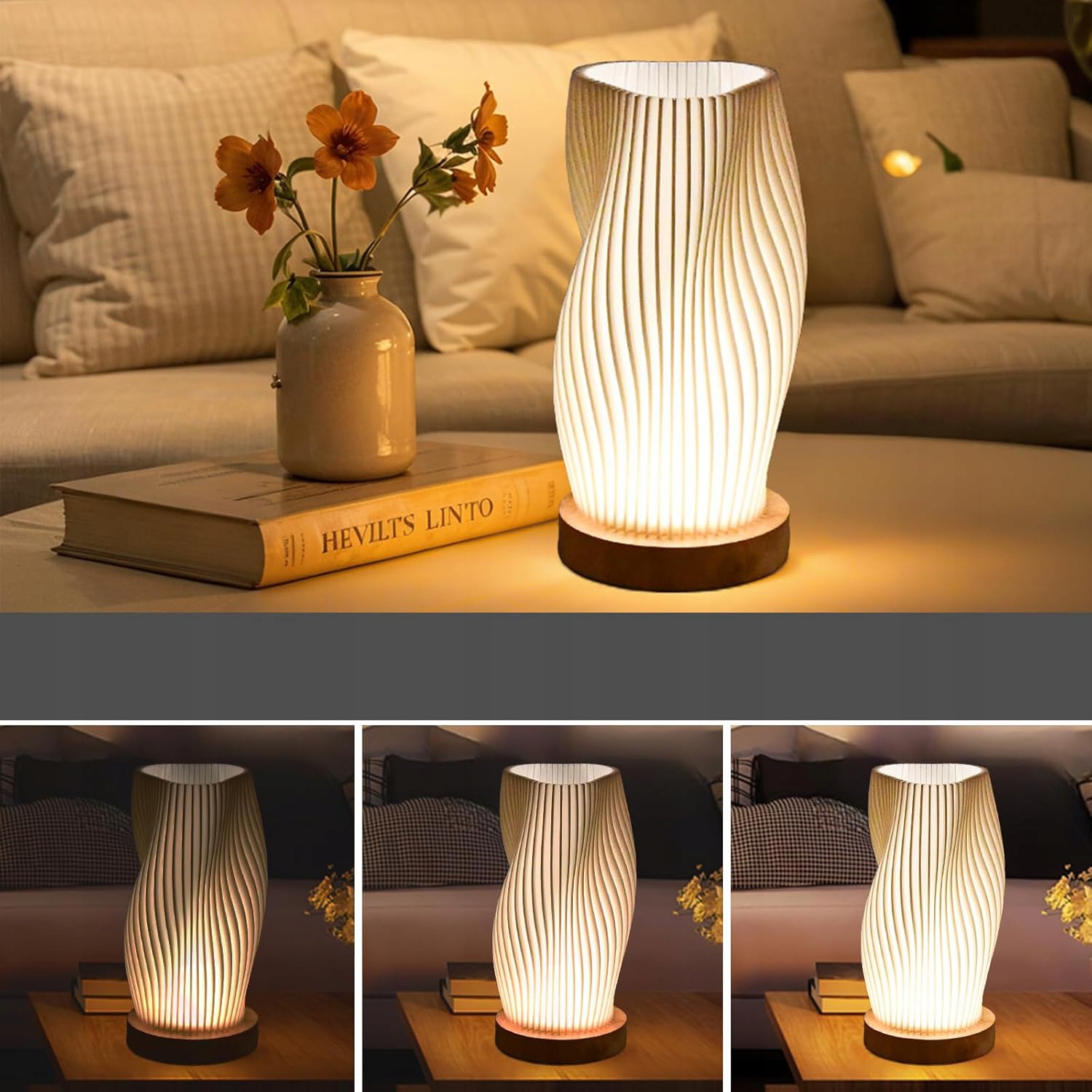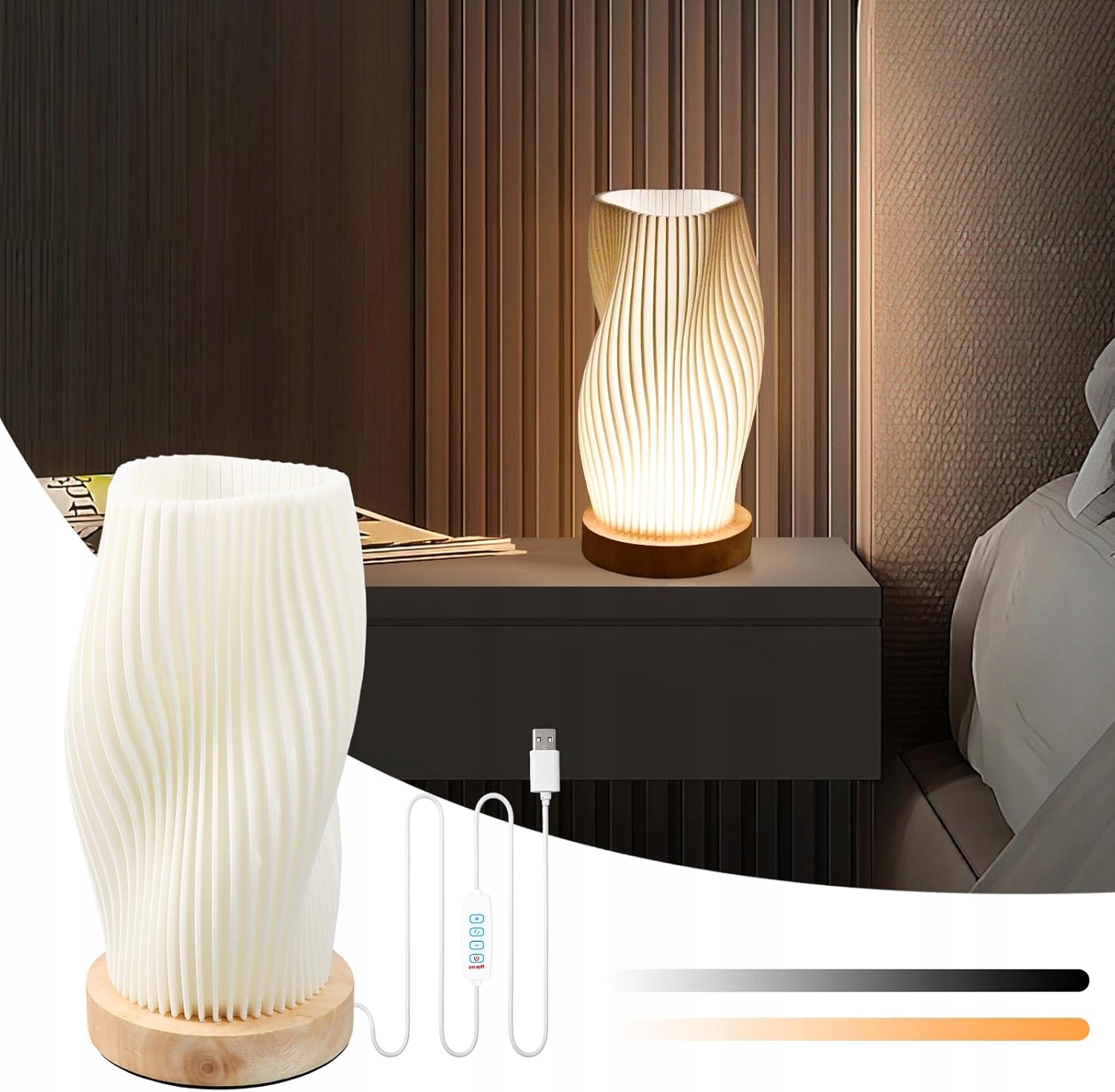 НАСТІЛЬНА ЛАМПА 3 КОЛЬОРИ ДЛЯ СПАЛЬНІ, НІЧНИК, ДЕРЕВ'ЯНА ОСНОВА