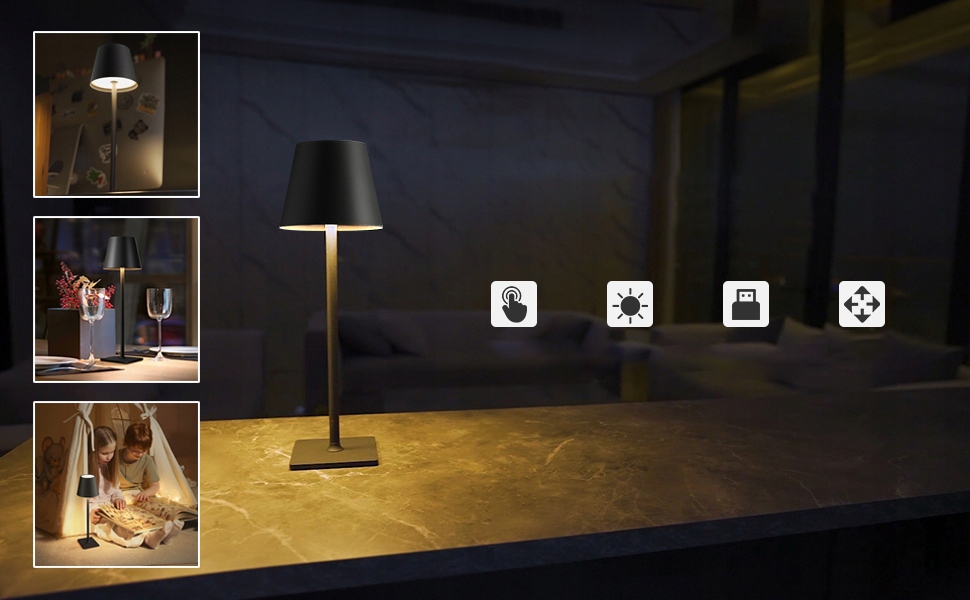 Вбудований акумулятор 4000 мАг, повністю заряджений і може використовуватися протягом 10-40 годин ( можна також використовувати під час заряджання), ця ідеальна настільна лампа легко модернізує вашу кімнату завдяки вбудованим батареям, ви можете використовувати освітлене місце будь-де.