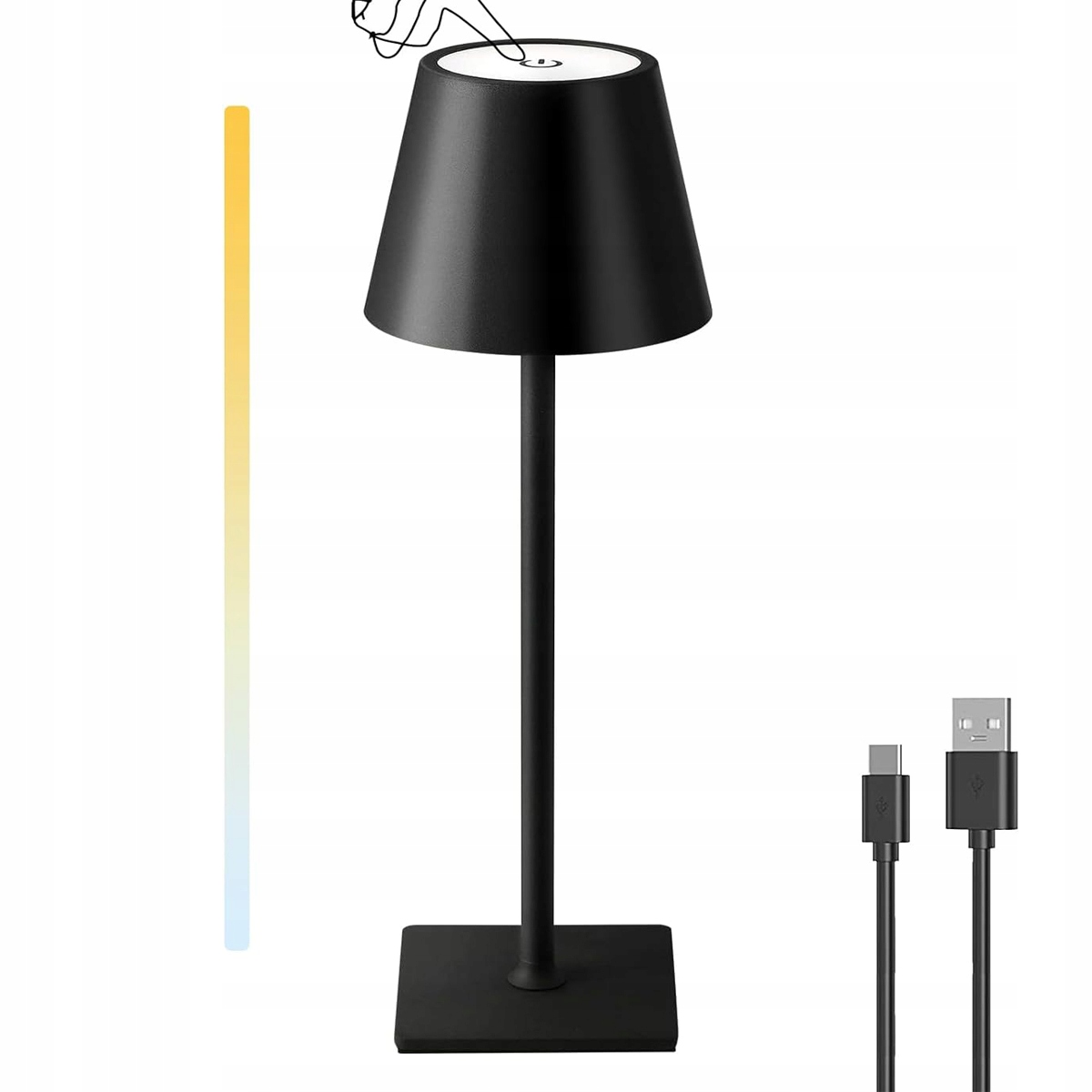 НАСТІЛЬНА ЛАМПА БЕЗДРОТОВА, РЕГУЛЮВАННЯ НАСТРІЛЬНОСТІ, СЕНСОРНА СЕНСОРНА НАСТІЛЬНА ЛАМПА З АКУМУЛЯТОРОМ ІЗ USB-C, БЕЗДРОТОВА ДЛЯ ОБІДНІЙ СТОЛ СПАЛЬНЯ КЕМПІНГ БАЛКОН, ЧОРНА