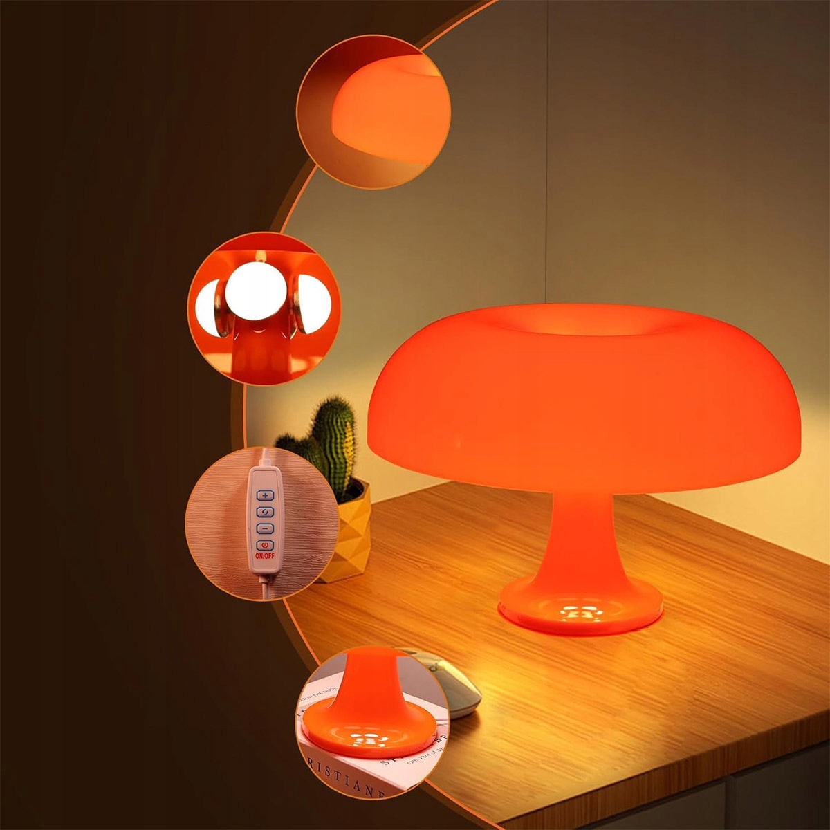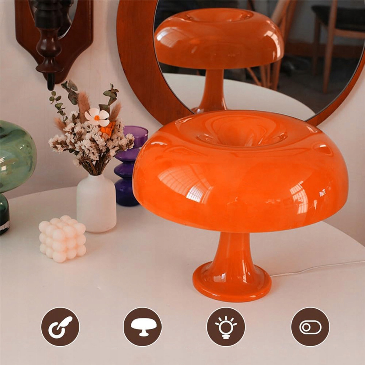 ⭐️ЛАМПА-ГРИБ 1970-Х ПРОСТА ЛАМПА-ГРИБ РЕТРО-ДИЗАЙНЕР РЕТРО-МОДЕРНИЙ ОБІДНИЙ СТІЛ З 4 СВІТЛОДІОДАМИ, ТРЬОХ КОЛЬОРНИХ ТЕМПЕРАТУР, 10 РІВНІВ РЕГУЛЮВАННЯ ЯСКРАВОСТІ (ПОМАРАНЧЕВИЙ)⭐️