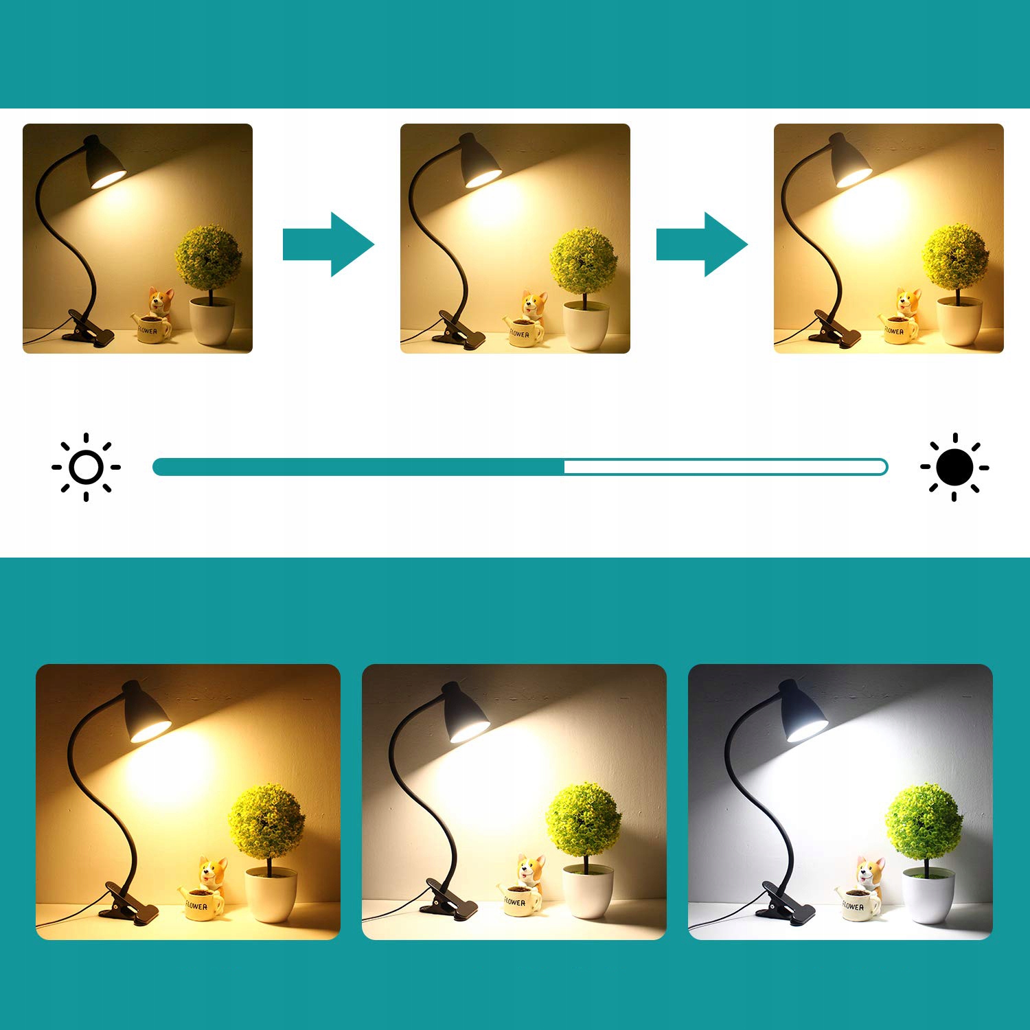3 колірні температури та 10 ступенів затемнення - Затискна лампа має три типи кольорової температури світла: тепле світло (3000 К), тепле біле світло (4500K) і біле світло (6500K). 10 рівнів яскравості, професійний захист очей, ідеально підходить для роботи вночі та читання.
