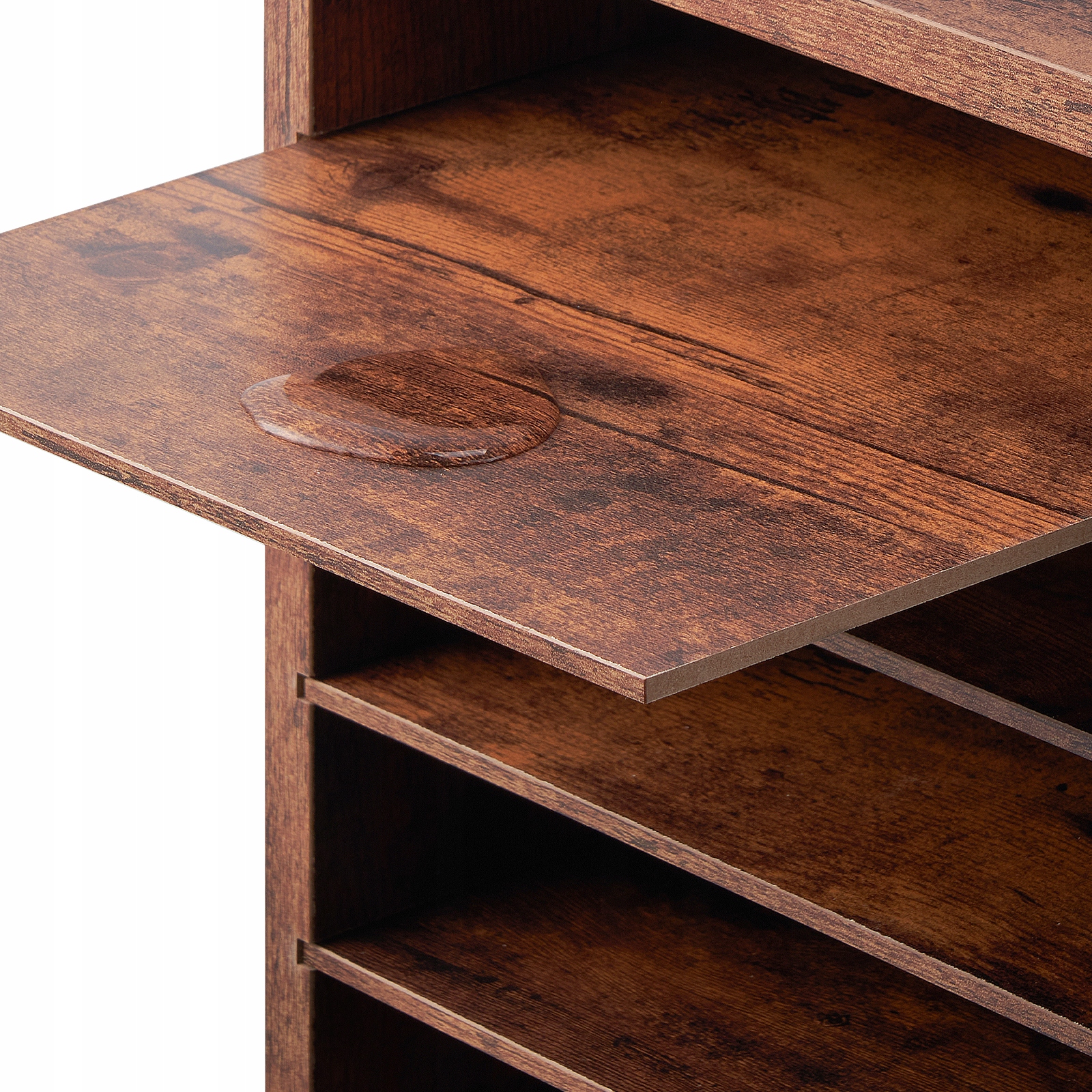 Надійна конструкція: наш дерев’яний органайзер для документів розроблений відповідно до ваших потреб у сховищі та виготовлений із міцної ДСП P2. Кожна полиця здатна вмістити важкі предмети, забезпечуючи тривалий термін служби. Пристрій сертифікований EPA, тож ви та ваша родина можете використовувати його без побоювань. Гладка полірована поверхня є водонепроникною, стійкою до подряпин і легко чиститься.