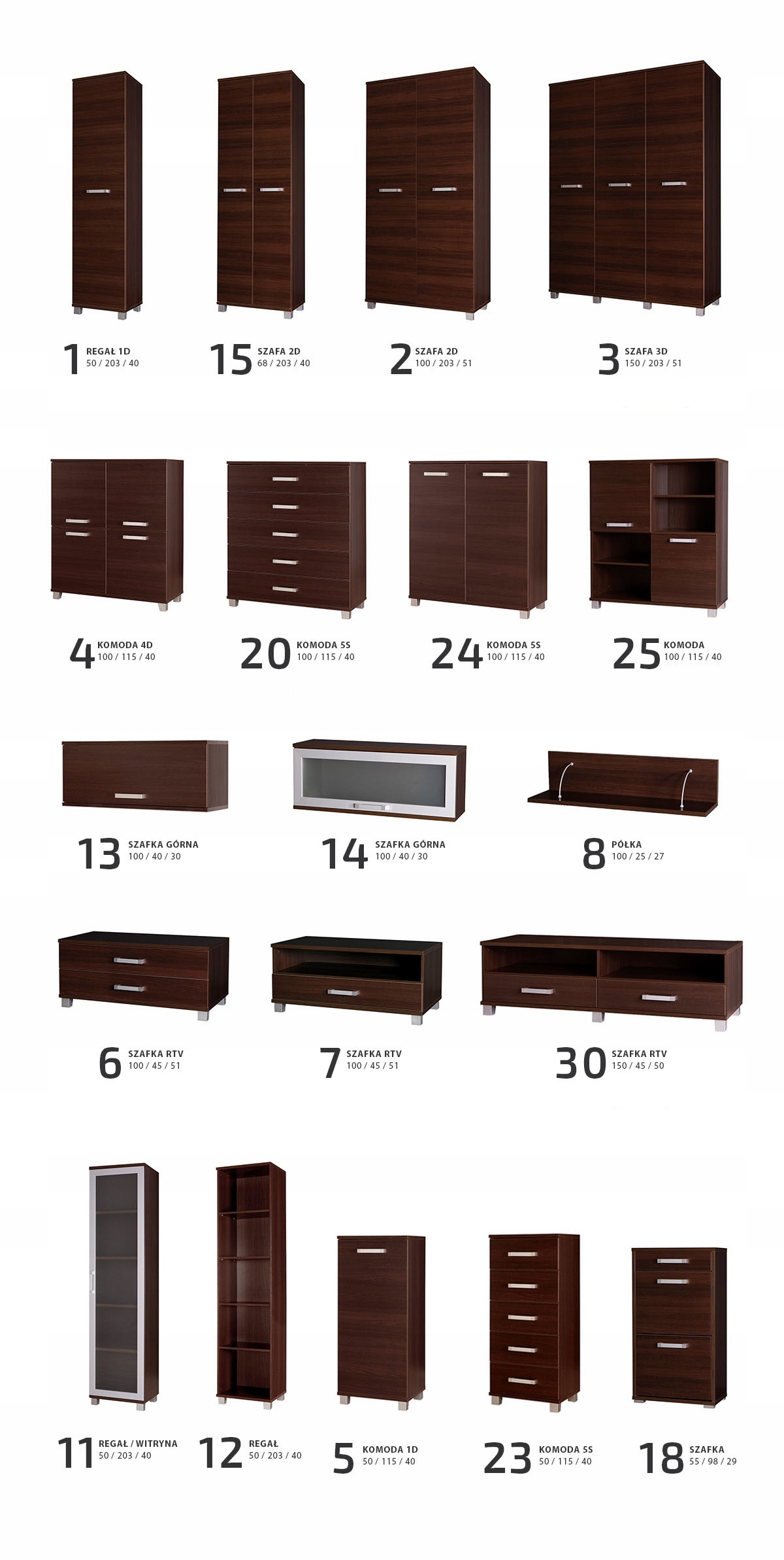 Aldo System - надзвичайно ефектний і стильний комплект меблів з дуже міцною конструкцією, який неповторно змінить будь-який інтер'єр. Серія містить майже 40 елементів у 3 кольорових версіях. Ми вдало створимо аранжування для вітальні, спальні чи кабінету. Меблі виготовлені з ламінованої дошки з кромкою ABS. Ми запрошуємо вас переглянути всю колекцію, доступну на Allegro.