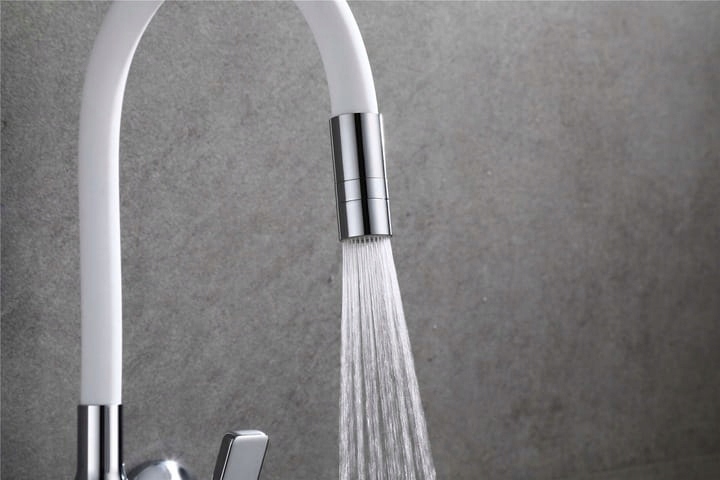 Кухонний змішувач FLEX WHITE з гнучким виливом - Ви можете керувати виливом як завгодно! Це дуже практично - легкий доступ до всієї раковини. Найкраща насадка гарантує, що змішувач буде використовуватися багато років.Змішувач має аератор з двома струменями.
