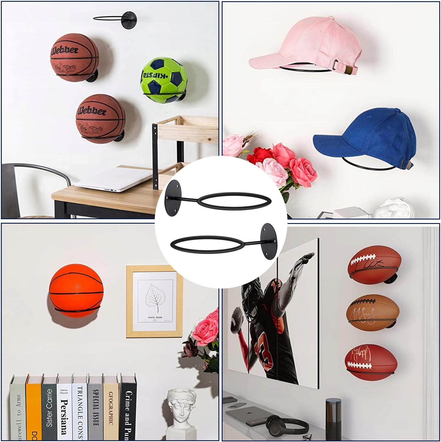 ✔️✔️Економія місця: настінна підставка для м’ячів запобігає розкиданню ваших улюблених м’ячів по всій кімнаті. Це зручне рішення для зберігання, яке економить простір і робить порожню стіну більш динамічною.