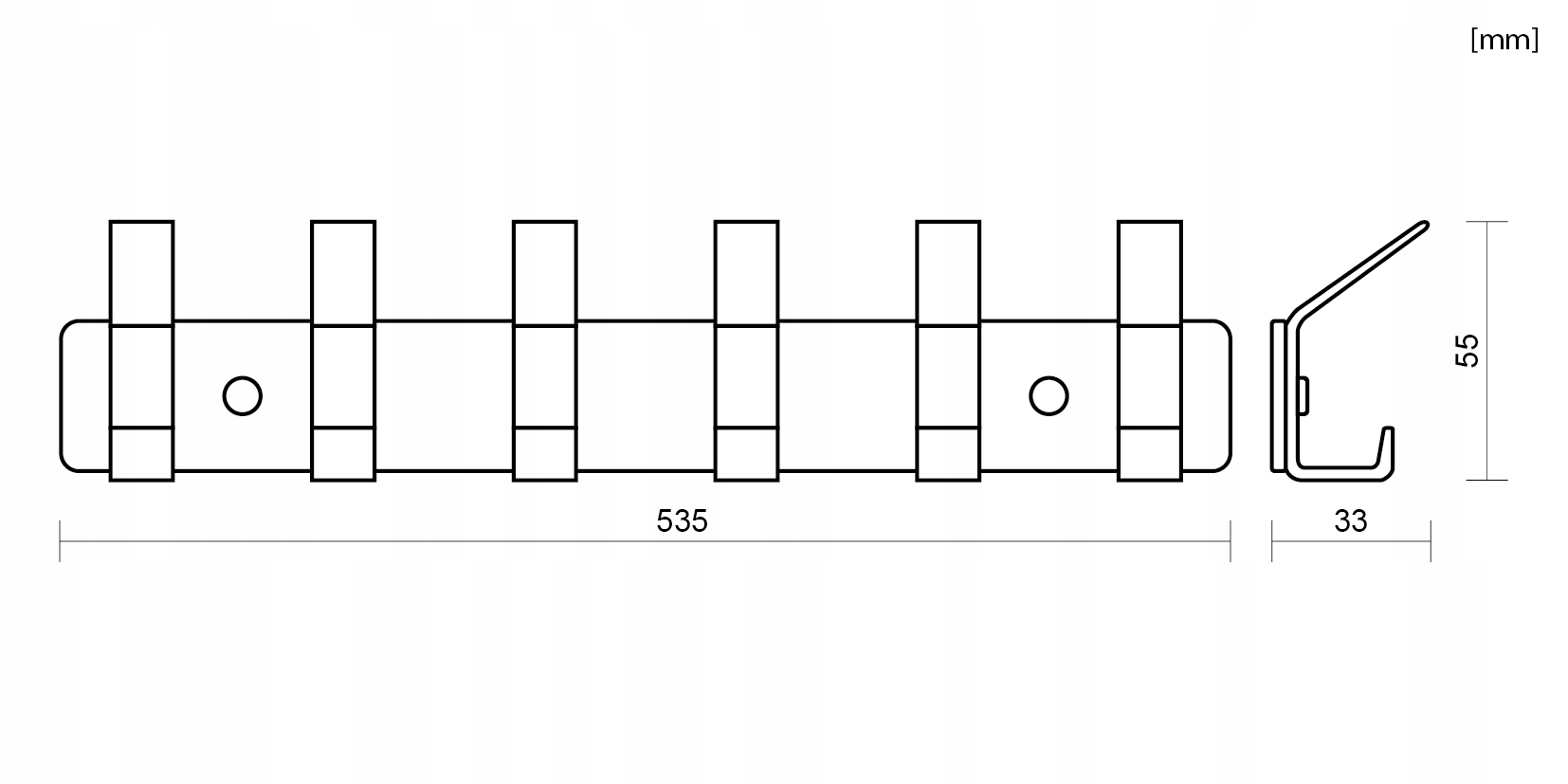 Настінна вішалка чорна металева настінна смуга з 6 гачками