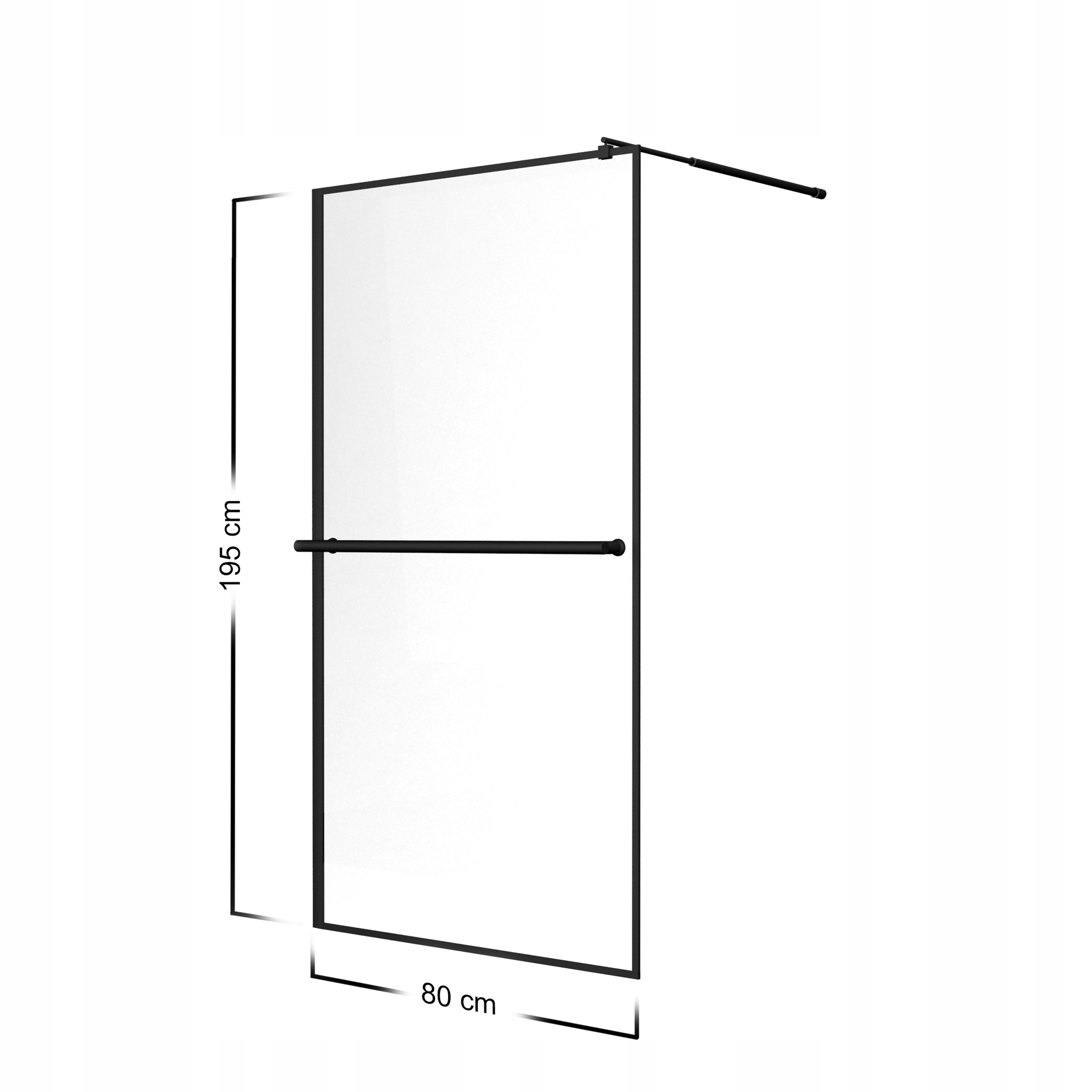 Настінне настінне вікно прохід 80 см чорна скляна дверцята 8 мм вішалка ESG