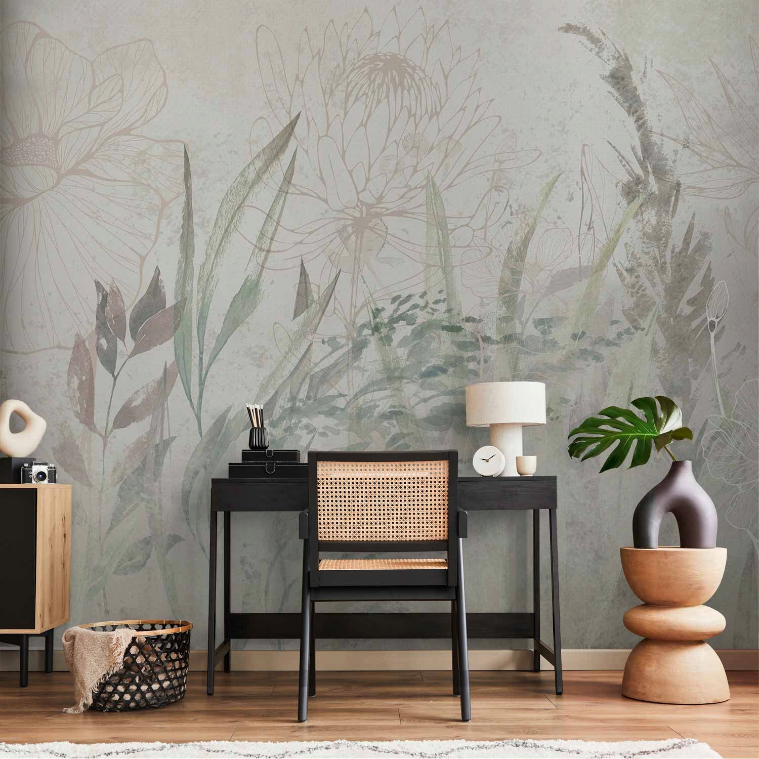 Настінні фрески квіти луг природа бохо стіни шпалери салон зал 350x256