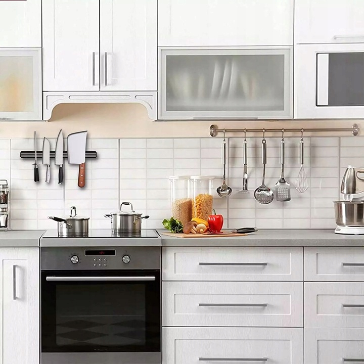 - Магнітну смужку можна повісити на стіну та зберігати ножі, кухонне начиння та інші металеві предмети