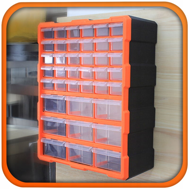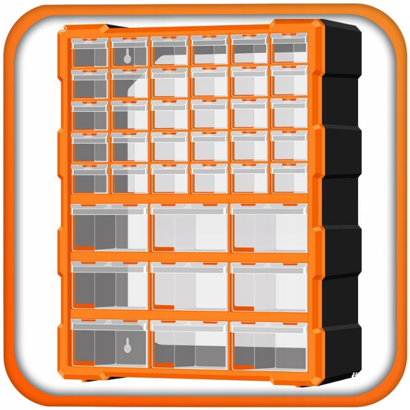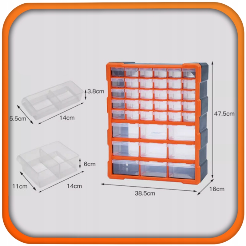 Цей органайзер на гвинтах – це продукт, розроблений, щоб надати користувачеві простий і ефективний спосіб зберігання та впорядкування дрібних предметів. Завдяки всього 39 ящикам, включаючи 30 ящиків розміром 14x5,3x3,7 см і 9 ящиків розміром 14x11x5,5 см, він забезпечує багато місця для зберігання різних типів елементів, таких як гвинти, гвинти, цвяхи, гачки тощо