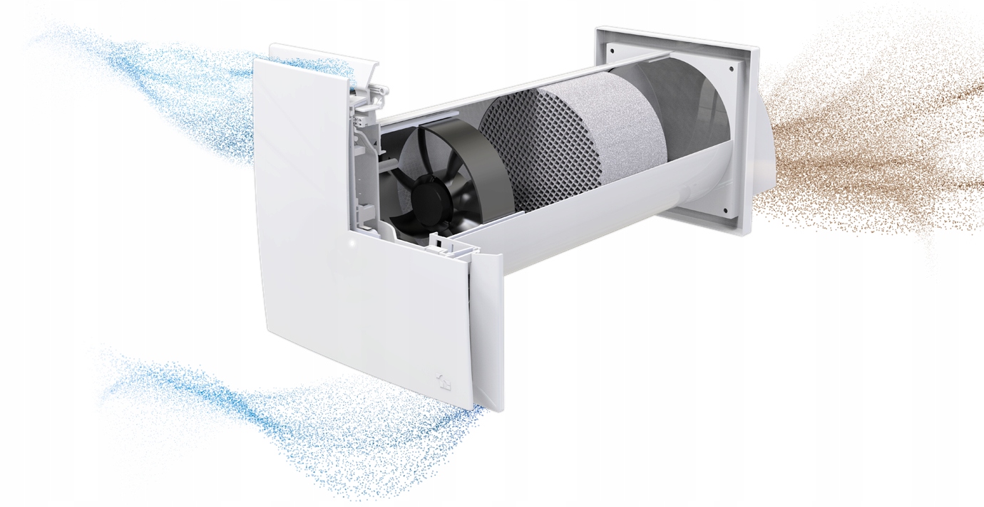 Завдяки своїм характеристикам він ідеально підходить для приміщень площею до 45 м². Оснащений безщітковим двигуном з дуже низьким енергоспоживанням, роботою вентилятора керують через СМАРТФОН. Рекуператор із вбудованим автоматичним контролем вологості та рекуперацією тепла забезпечить ефективну вентиляцію приміщення, зменшуючи потребу нашого втручання в роботу пристрою