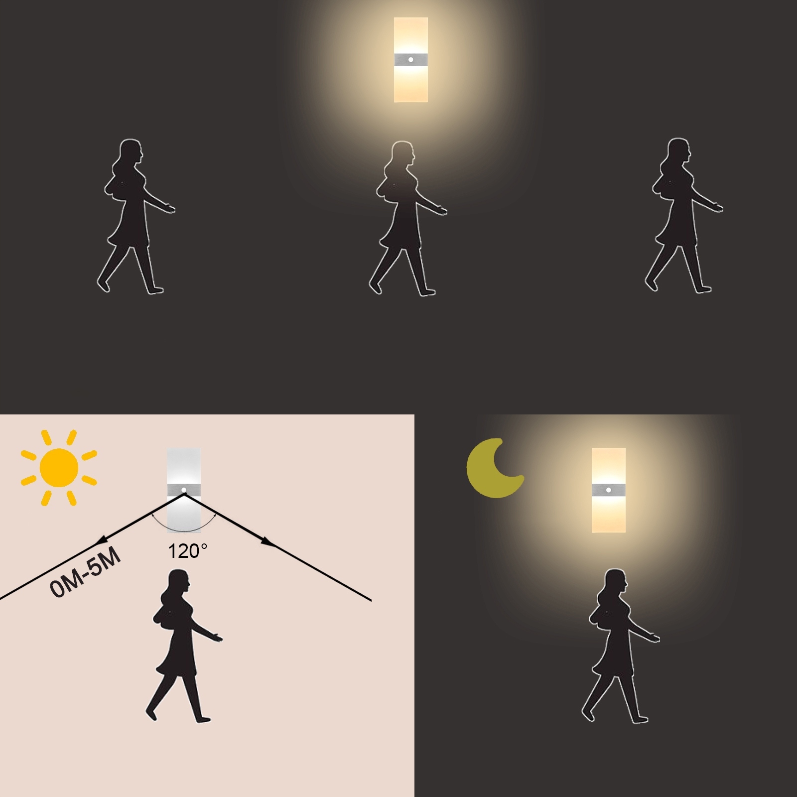 - Тип: внутрішній світлодіодний настінний світильник, настінний світильник із датчиком руху