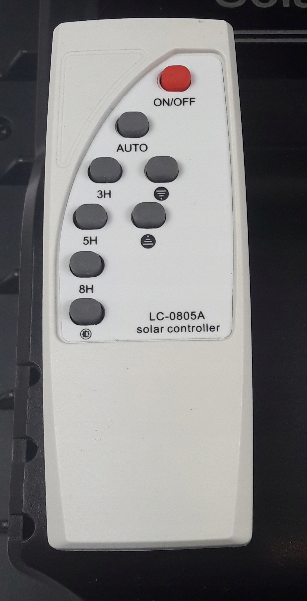 2. Світиться постійно (після натискання кнопки AUTO) - в цьому режимі ви можете регулювати яскравість за допомогою кнопок на правій стороні пульта. За допомогою кнопок зліва ми можемо вибрати час освітлення: 3, 5 або 8 годин. Лампа залишатиметься увімкненою протягом вибраного часу або до вимкнення, натиснувши кнопку ВИМК.