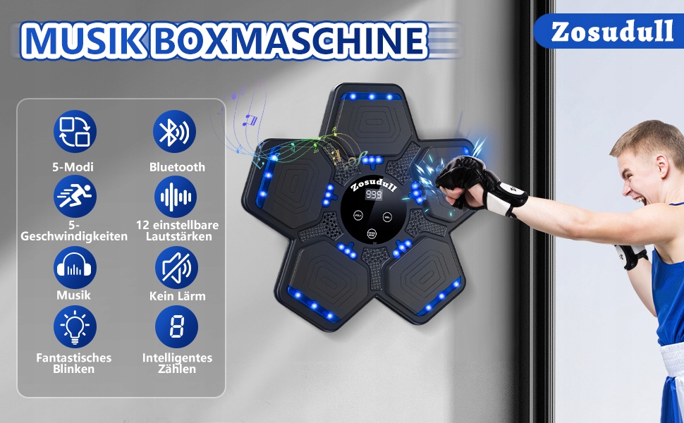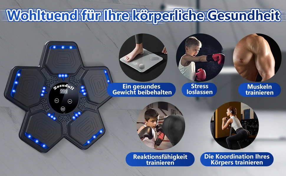 Настінний музичний бокс Zosudull можна прикріпити безпосередньо до стіни без Клейка стрічка має сильне присмоктування, тому навіть дорослі не впустять боксерську мішень. Ви більше не обмежені місцем і часом, ви можете займатися боксом вдома, в офісі або на природі.✅