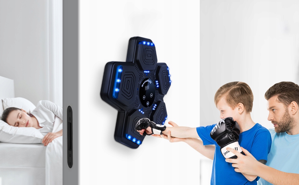, які безперервно блимають, коли ви завдаєте ударів, додаючи задоволення вашим тренуванням. Музичний боксерський автомат не тільки оснащений звуковими ефектами, але також може бути підключений до вашого мобільного телефону через Bluetooth для відтворення музики з вашого мобільного телефону. Змініть нудні вправи та насолоджуйтесь життям під час тренувань.✅