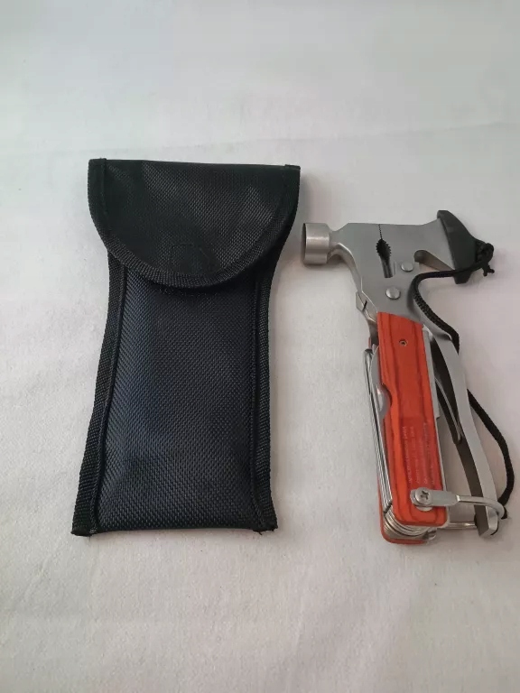 - Сокира з ножем, який залишається в безпеці в стилі завдяки магнітам, майте рукоятку, яка не має пластику з гарним рукояткою. З голови голови можна використовувати як молоток для водійських колів або відстеження намету на кемпінгу.