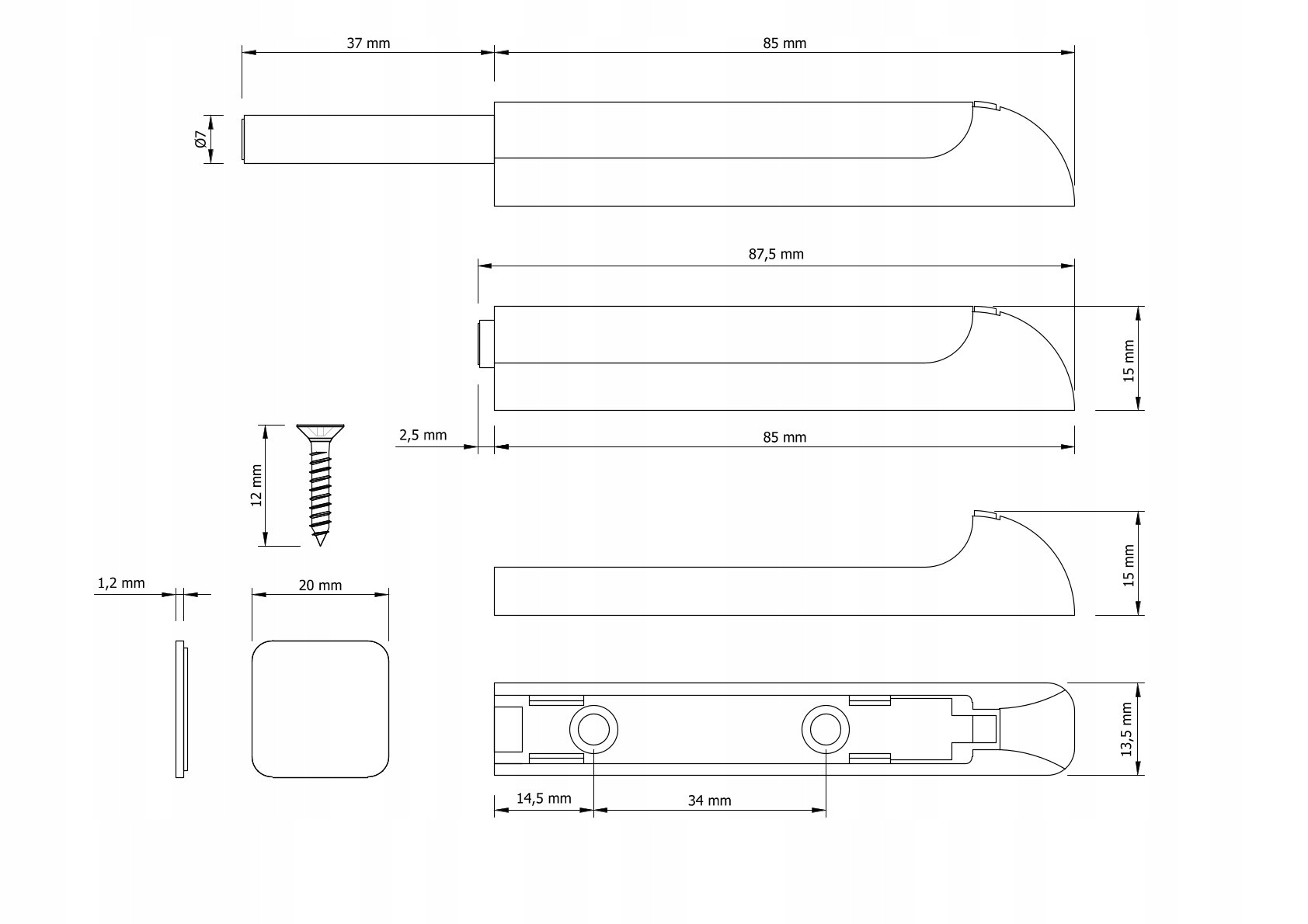 - У комплект входять гвинти для монтажу. Популярне рішення в сучасних меблях, де ми не хочемо розміщувати ручки на фронтах.