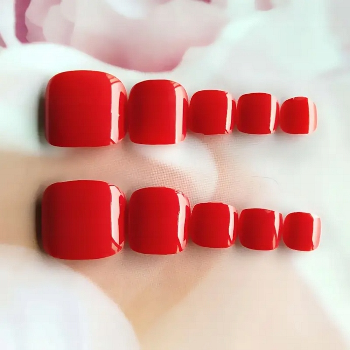 Натисніть на наконечники нігтів 24 нігті для ніг червоного червоного кольору