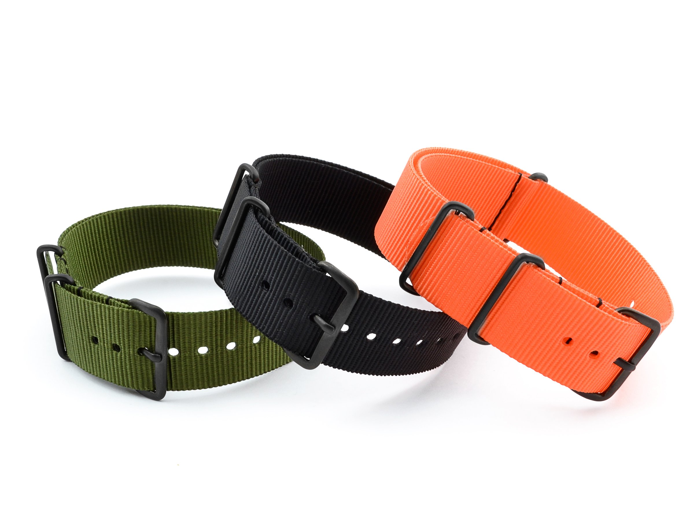 Ремінець НАТО виготовлено з високоякісного нейлону, тому він ідеально сидить на зап’ясті. Ремінець водонепроникний і підходить для плавання. Пряжки виготовлені з чорної оксидованої нержавіючої сталі. Завдяки насиченим кольорам ремінці серії Nato Nylon PVD задовольнять навіть найвибагливіших користувачів і додадуть нового характеру кожному годиннику.