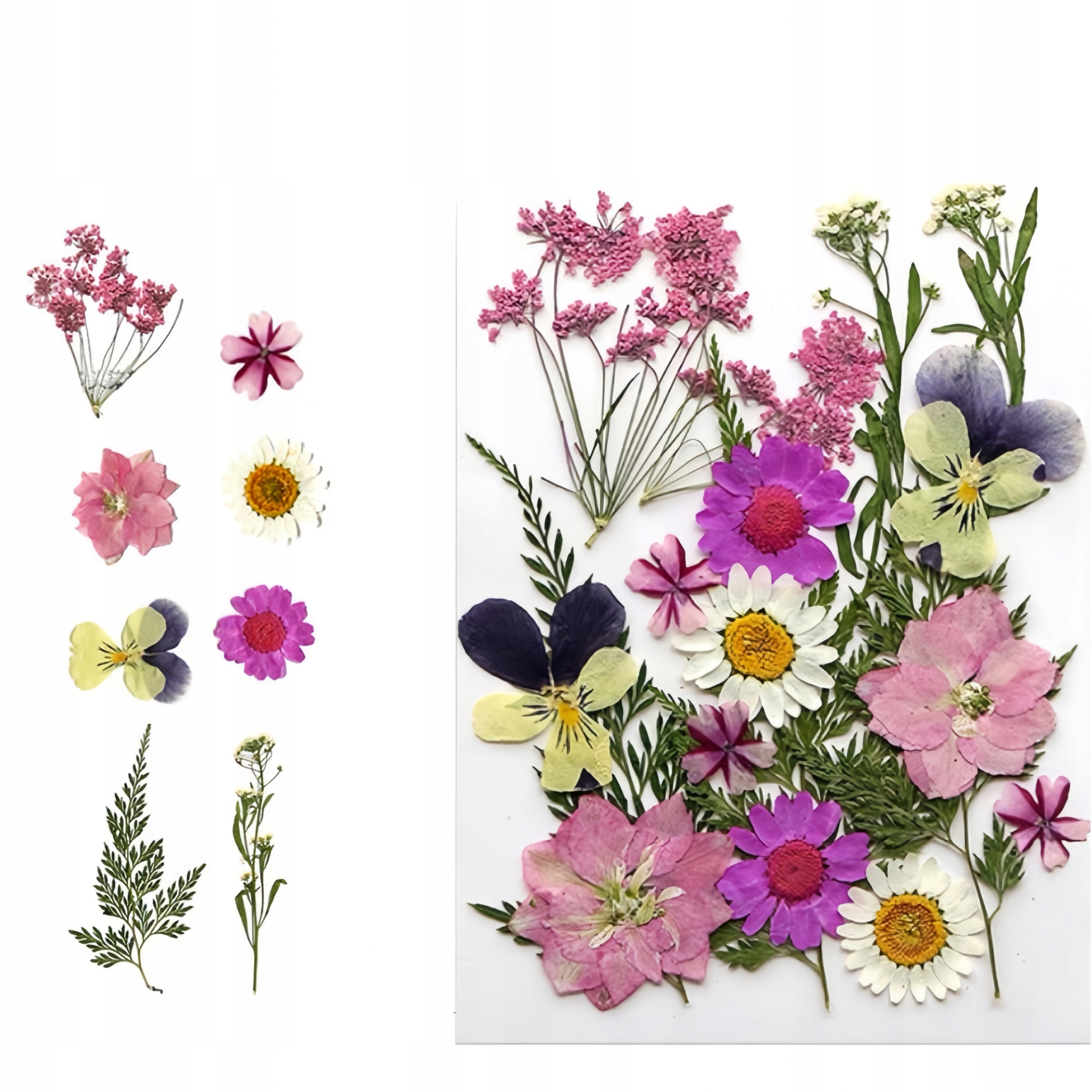 Широке застосування: Ці справжні натуральні висушені квіти та листя забезпечують прекрасний спосіб зберегти спогади про вегетаційний період, ідеально підходять для прикраси нігтів, корпусу телефону, форм із смоли, створення свічок, створення ювелірних виробів ручної роботи, закладок, фарбування стін, макіяжу обличчя.