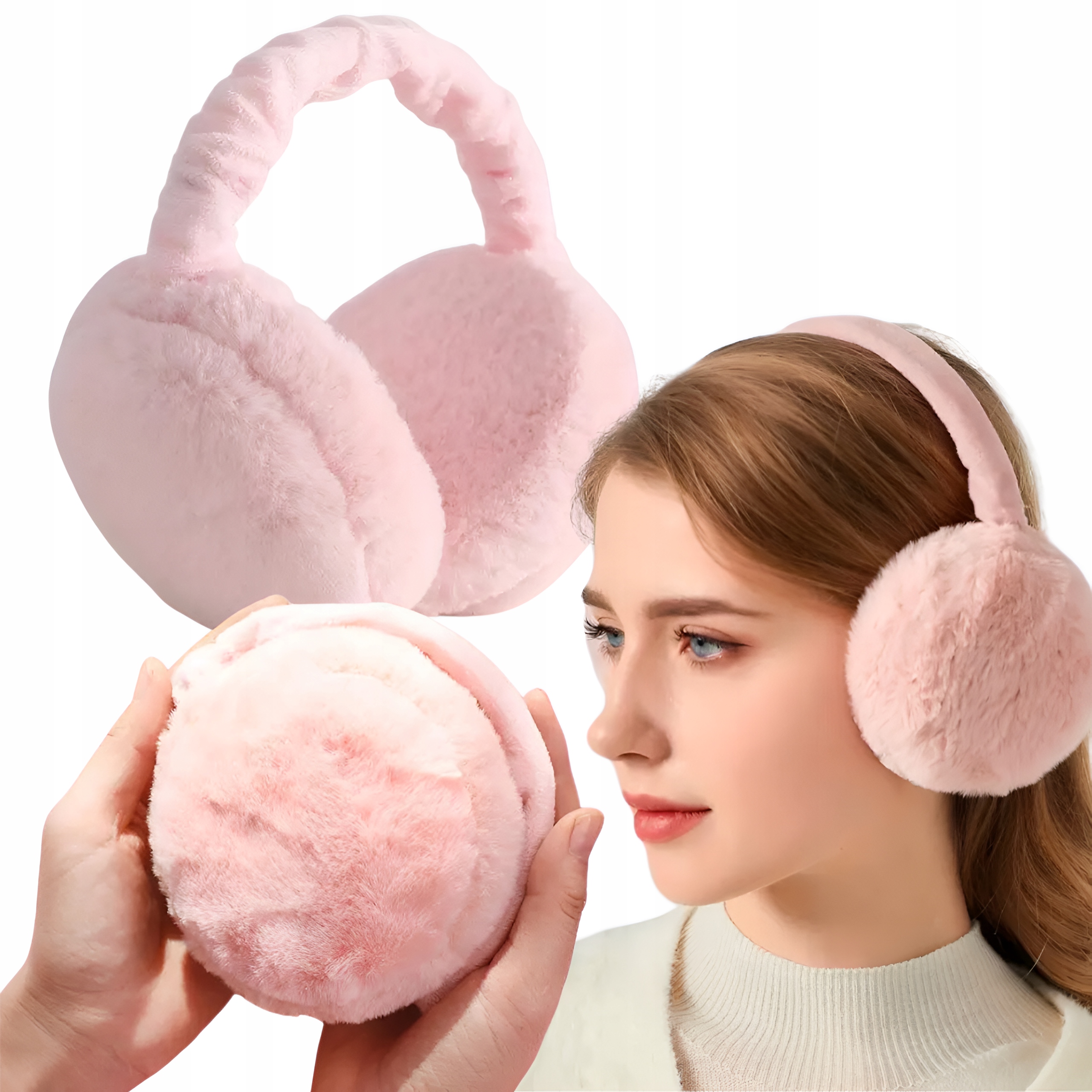 NAUSZNIKI ZIMOWE NA USZY PLUSZOWE CIEPŁE FUTERKO REGULOWANE SKŁADANE RÓŻOWE