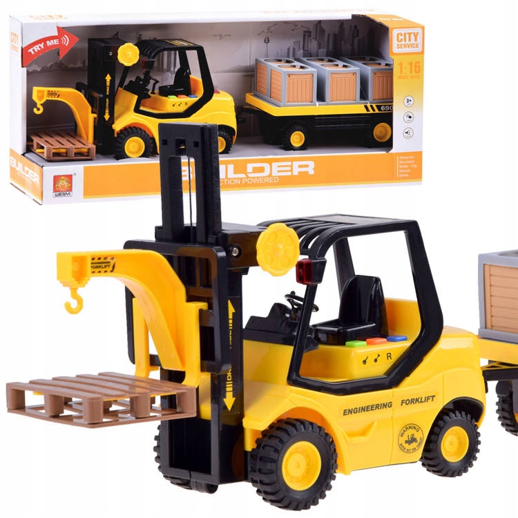 Вилочний навантажувач із рухомими частинами необхідний на кожному складі. Ця комплектація повністю виготовлена з пластику, має рухомі елементи, світлові та звукові ефекти, витримує будь-яке навантаження.