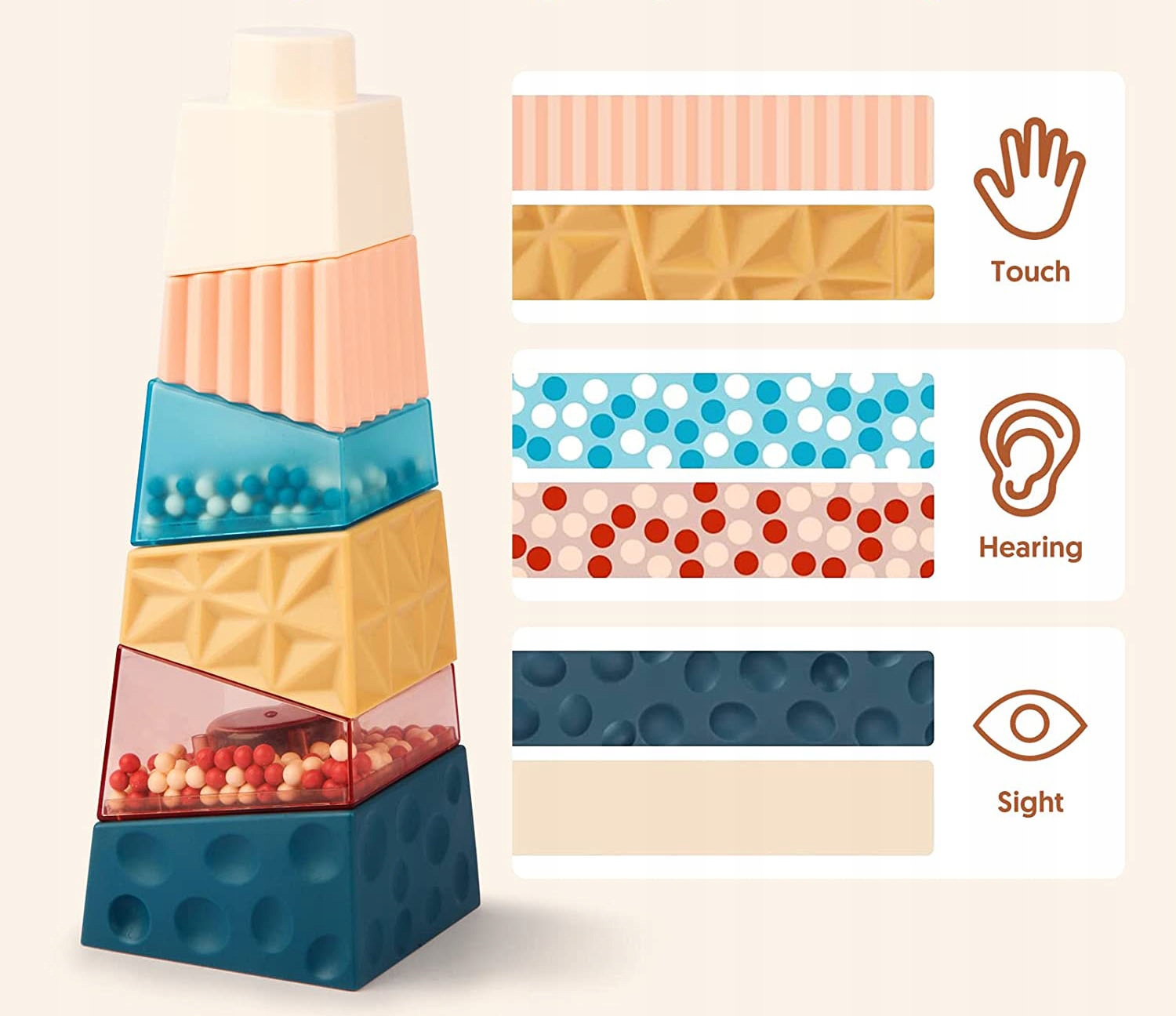 - ✅ БАГАТОФУНКЦІОНАЛЬНА СЕНСОРНА ІГРАШКА - 6 неправильних елементів, які дозволяють створювати різноманітні конструкції, ідеальні як іграшка для тренування ручок. Привабливий зовнішній вигляд, рухливі кульки, що видають звук, і легка конструкція зроблять об’єкт приємним протягом багатьох годин.
